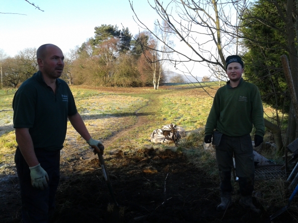 On walking out of the Park along the the Kelcliffe bridleway I happened upon Mark and Jamie from Pudsey Landscapes digging out the farm gate entrance in readiness for creating a generally more welcoming experience. When I approached they were hard at work but paused monetarily to chat and update me with where they had got to. They are expecting to have the gates in over the next week or so.