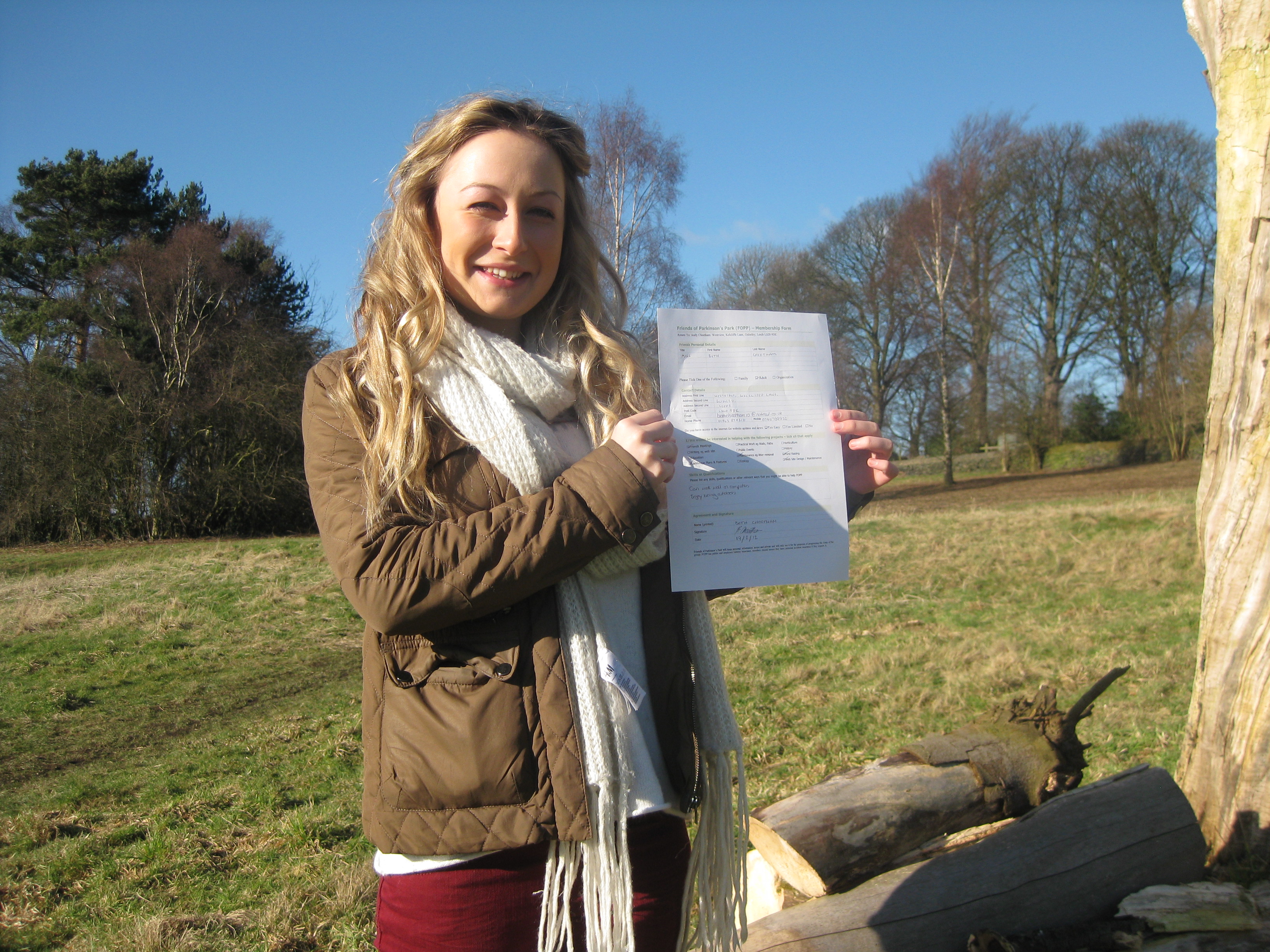 Friend of Parkinsons Park, Beth Cheetham, becomes the first person to complete an “official” membership form and as such will be added to the official register of Friends. Beth wants the park to become a haven for wild life and she would also like it to be a nice place to sit and enjoy the sun in the Summer.