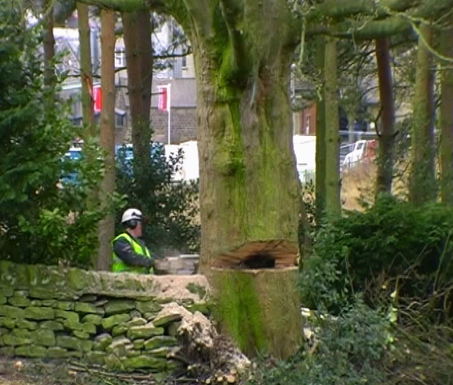 At around 9.40am this morning, a piercing ‘crack, crack’ echoed across Clapper Brow, quickly followed by the shout of FALL from Paul Elbourne, of Beechfield Tree Services; then, the sycamore on the edge of the park gracefully fell over; small branches and twigs exploding in all directions like a bursting firework. Luckily, David Myers, FOPP’s intrepid film maker, was there to capture the moment for posterity.