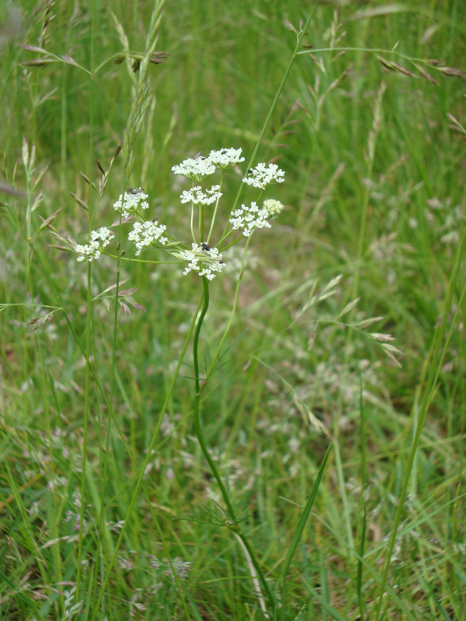 In flower at the moment is the greater bird’s foot trefoil (Lotus pedunculatus) which can be found dotted about amongst the delicate white flowers of the pignut (Conopodium majus) if you look carefully amongst the grasses.