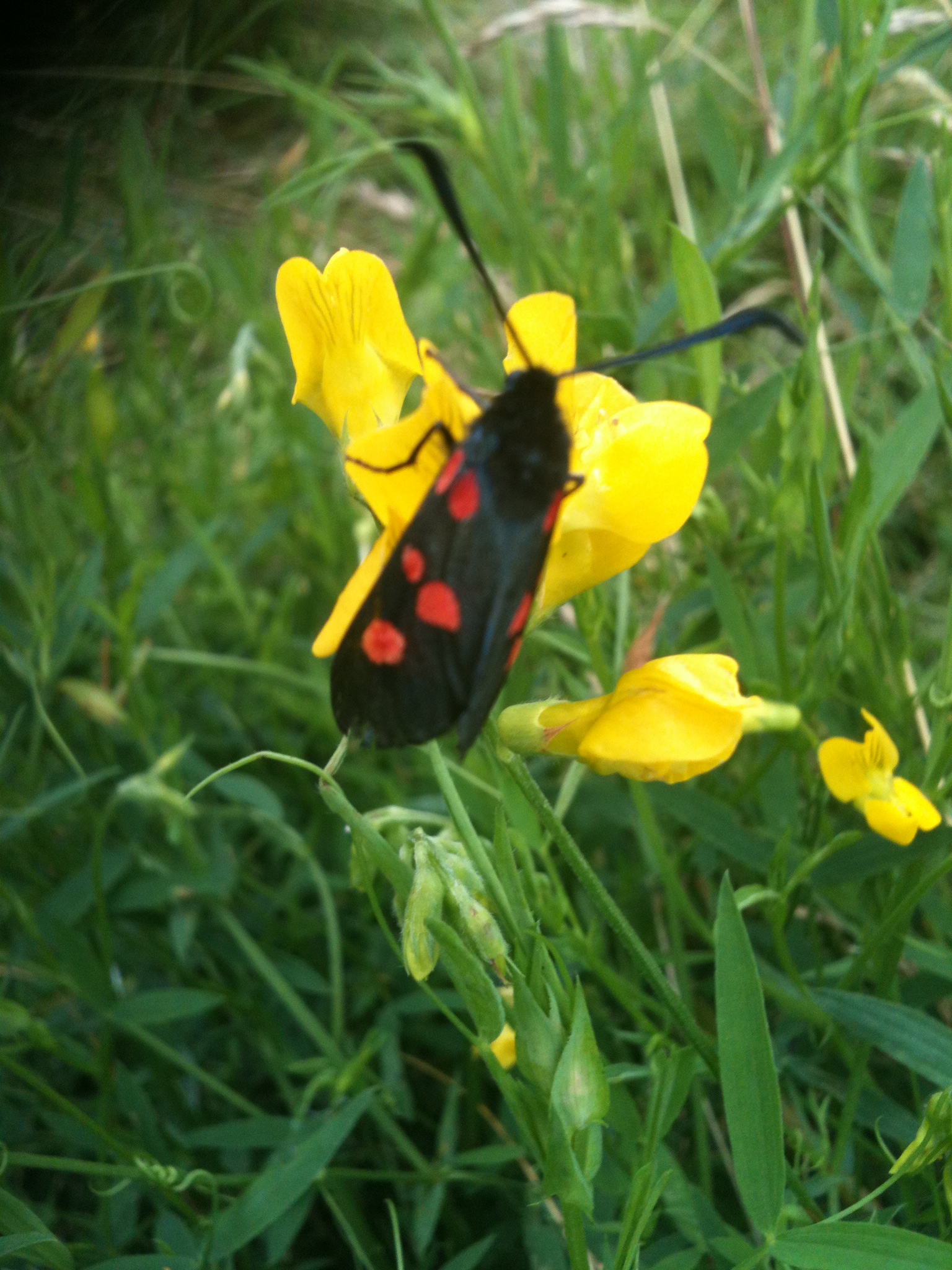 In our allotted 15min, we spotted two large skippers, two six-spot burnet moths, several meadow browns and a number of ringlets. A subsequent walk around the park also led to sightings of a small tortoiseshell, and many more ringlets. Hanging on the nettles near the farm gate, we found a colony of black caterpillars just waiting to turn into delicate winged creatures: whilst a group of ragwort down near the Greenshaw Terrace gate is hosting some cinnibar moth caterpillars, which are toxic to birds because of the plant’s poison.