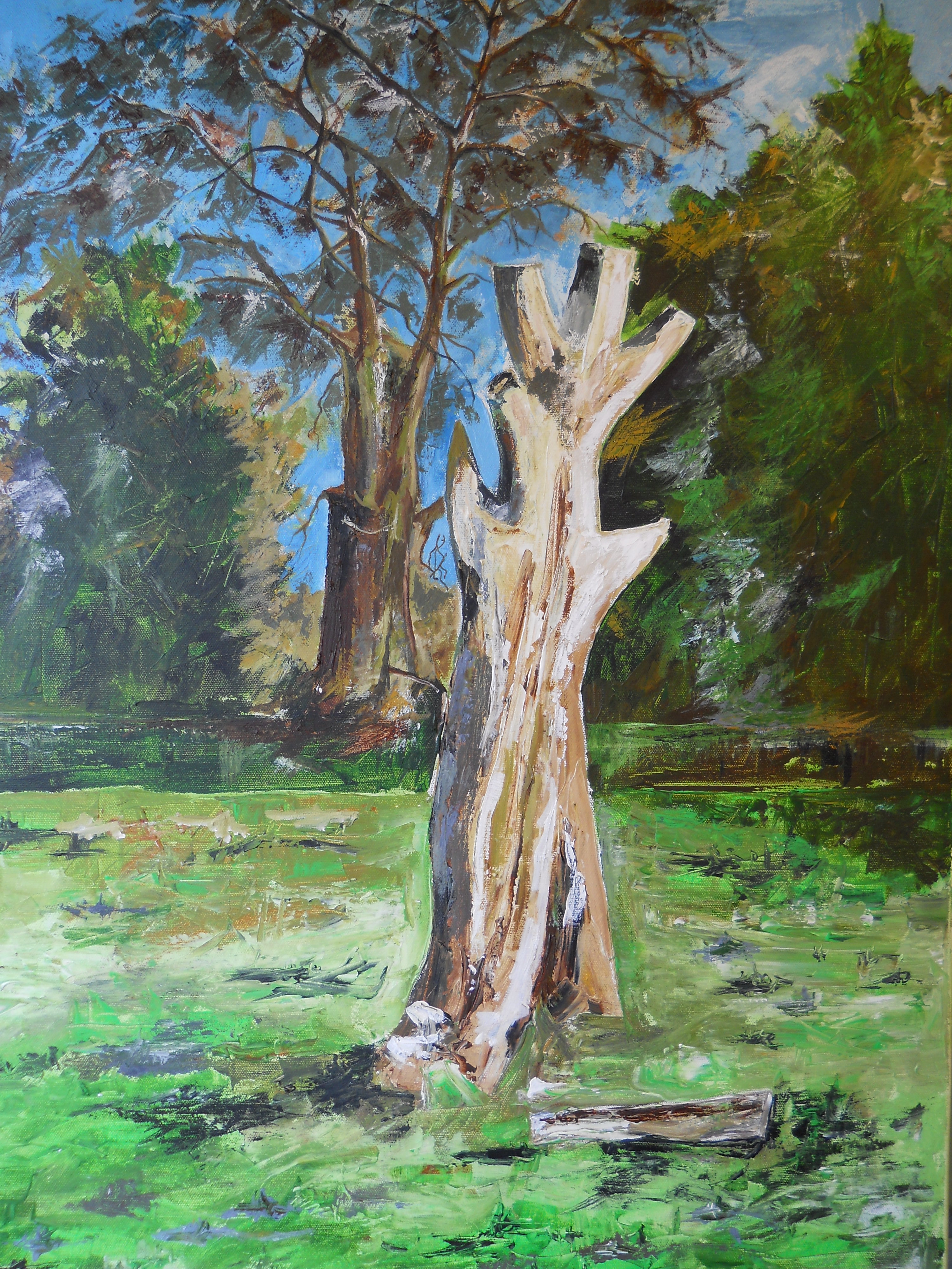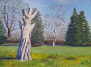 Back in March we suggested that the dead chestnut tree in the Park might be a suitable subject for the “Hockney treatment”, in the light of his successful exhibition of Yorkshire landscapes. Caroline Herries and Jeff Halden responded to the call and have produced these wonderful studies – contrasting the tree to its surroundings. Both of them study at the studio of Simon and Angela Dawson of Stonefall Avenue, Starbeck.