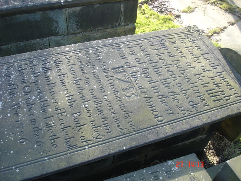 The next ‘happening’ was more spooky. Barbara was walking back home late in February, and decided to short cut through Guiseley Churchyard – she pushed open the side gate, and walked around the back of the church; it was then that a grave she’d never noticed before, jumped out at her – “Joseph Driver of Kelcliffe, son of Richard Driver of Horsforth, died April 20 1715, aged 31”. William Driver born 1707 son of Joseph Driver who died in 1776, is mentioned on the same gravestone. The sudden appearance of ‘people from the past’, just when you are looking for them, is a common phenomenon known to family and local historians – who often joke that some ‘spirits’ actively want to be found, whereas others do everything they can to keep, often guilty, secrets hidden.