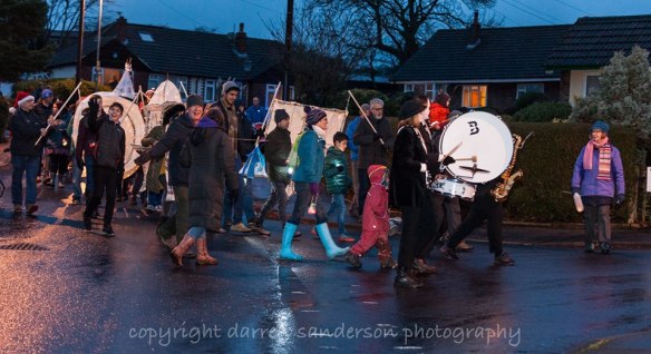 It’s the taking part that matters at the Friend’s of Parkinson’s Park Lantern Parade, handcrafts, theatre, music all have a part to play, not to mention decorating streets and keeping the whole ‘show on (of off as the case may be) the road’. The 5th Parkinson’s Park Lantern Parade had all of the above as everyone joined in to light up Guiseley streets for the Winter Solstice and the coming of Christmas, and make a big noise about it.