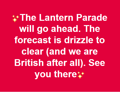 Children had spent weeks making their individual lanterns, which they proudly paraded, whilst our special Guiseley Lanterns depicting Guiseley Wells, de Ward Cross, Theatre Button and Parkinson Clock, emerged out of history to glow once more, carried by eight strong lantern bearers.