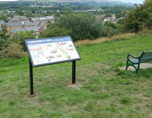 - The Geology and Ecology of the Park – by the bench at the top of the Park. So it can be read as people look over the expanse of the Park and beyond across the Guiseley Gap to Wharfedale and Airedale.