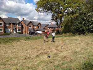 The next step is getting rid of the clumps of coarse grass and the planting and cultivation of more varied meadow wildflowers to build up a nectar rich habitat to encourage bees, which in turn will help pollinate the nearby community orchard .