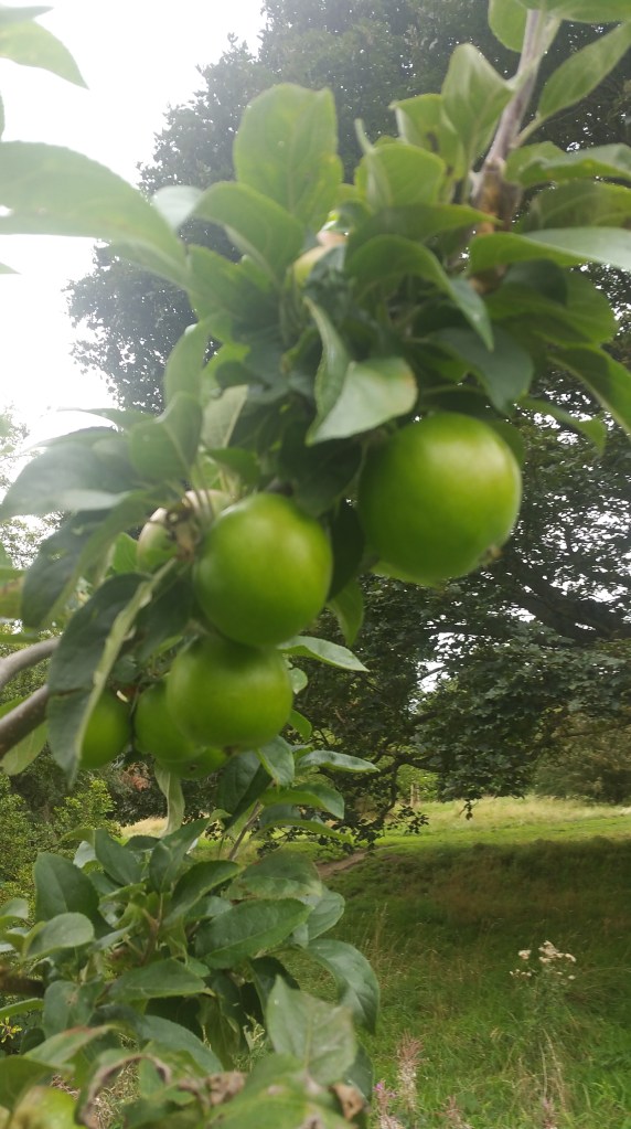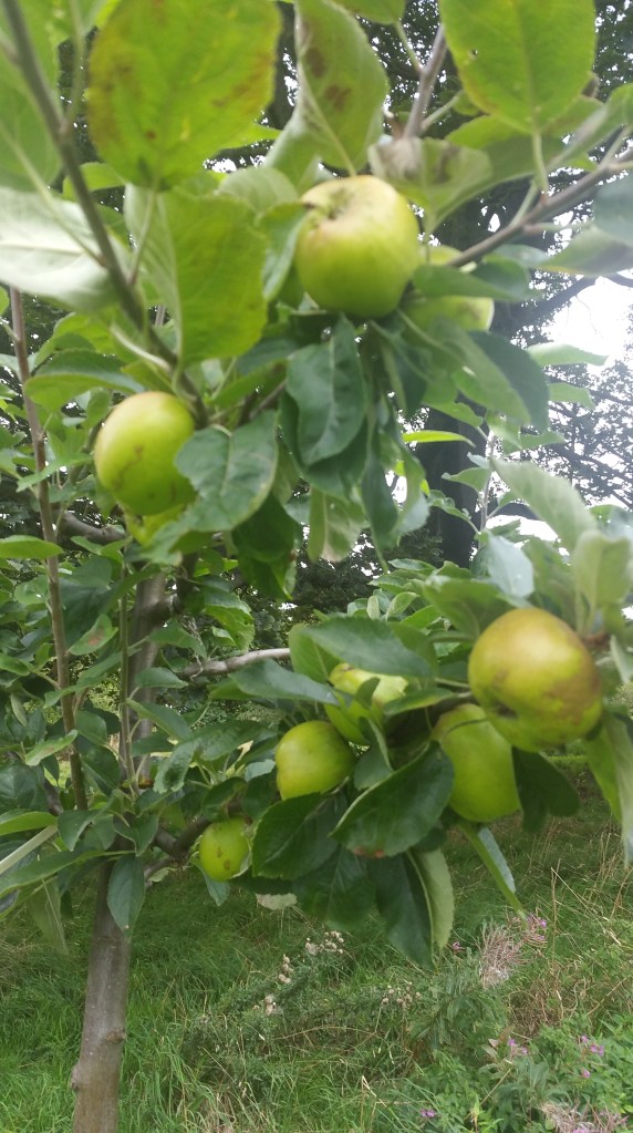 The apples in the orchard are ripening nicely, but they are not yet ready for picking. The majority of the varieties need another month or so to mature – and we could do with some sun. If you look in our orchard trail (download here) you will find the ideal picking dates for each type. Also whether the apple is a dessert fruit or better for cooking.