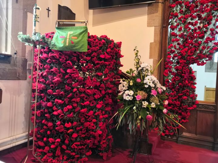 We therefore thought we would put up a poppy display in the Park. Our idea is to have a poppy blanket draped over the Farm Gate with the same look as these ones in Rawdon St Peter’s (see picture). It will not be as detailed as this, as there is not a lot of time to organize, but this is the rough idea