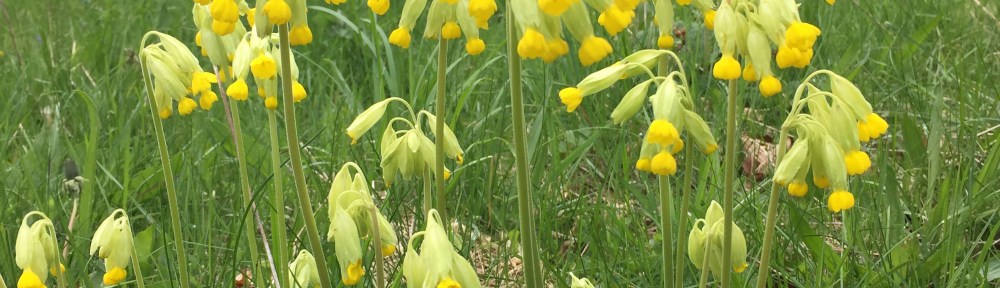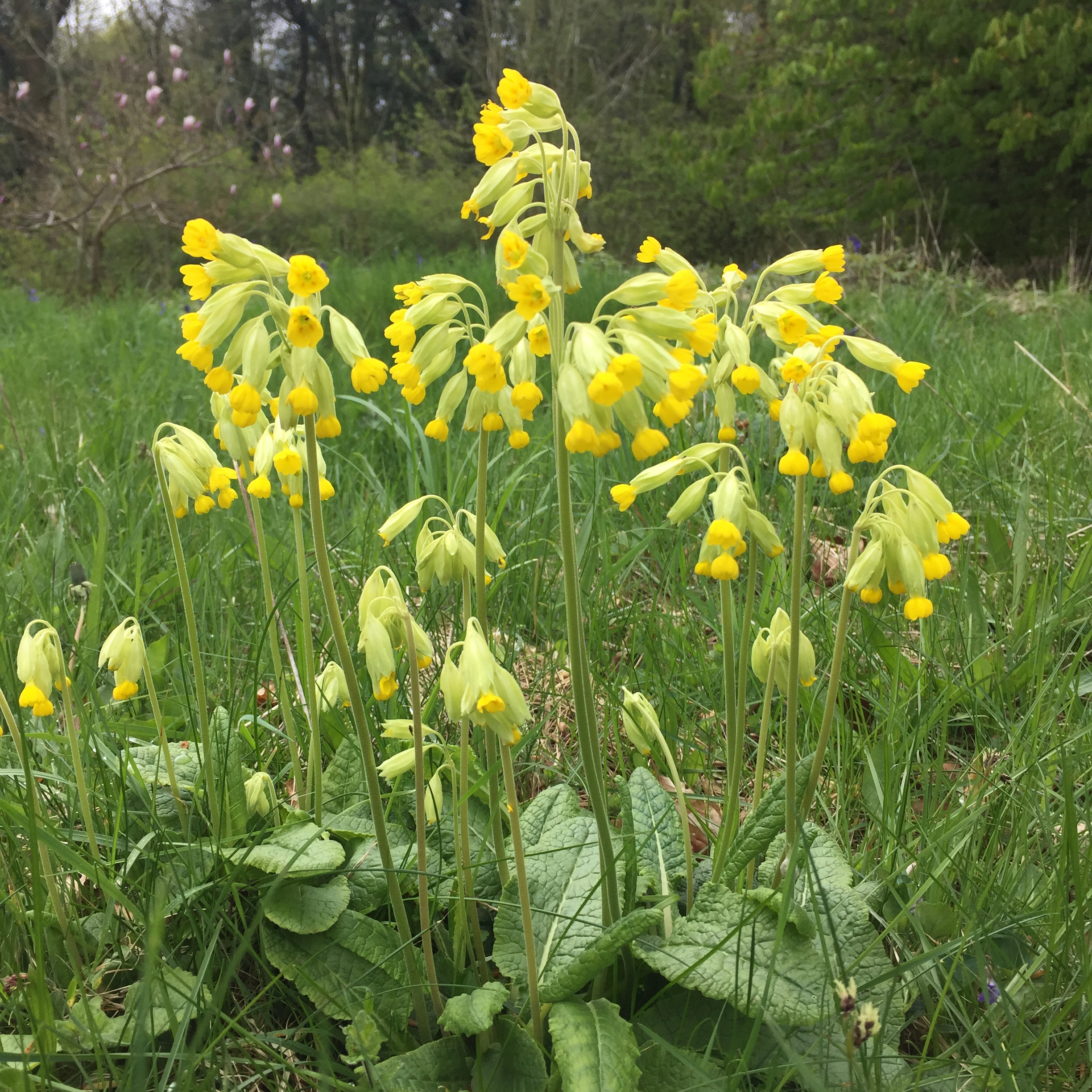 Cowslips are beginning to flower in the wildflower meadow. A traditional native flower they are important nourishment for bees, beetles and butterflies such as the brimstone and Duke of Burgundy . The plant is said to have sedative qualities and was traditionally used to treat sleeping problems and coughs. The Spanish add the leaves to recipes for a citrusy flavour; they also traditionally flavour English country wine.