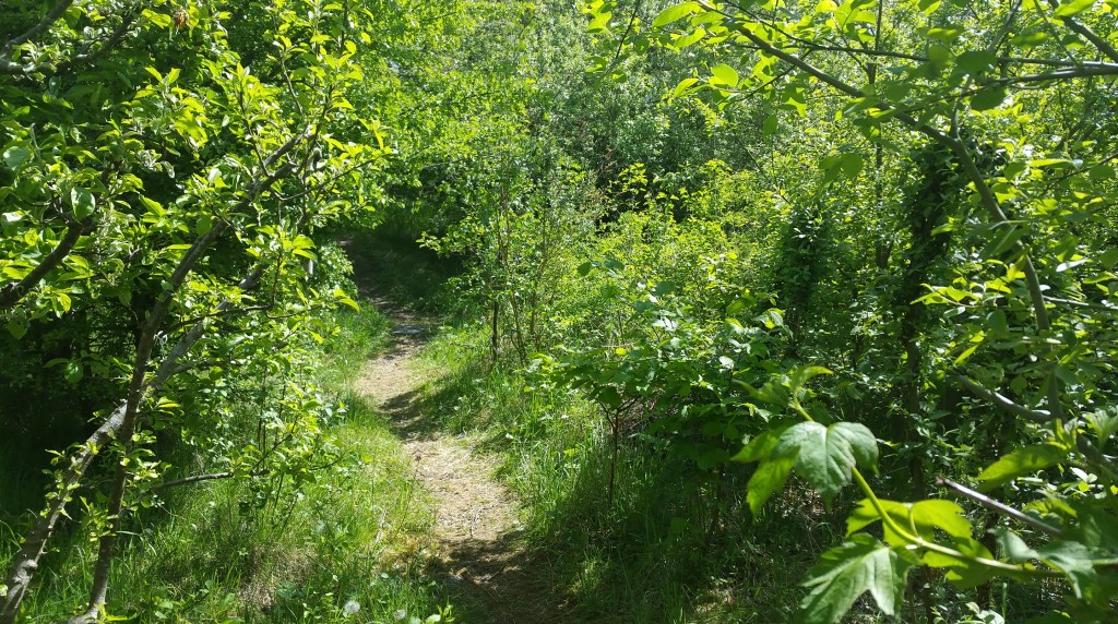 The bottom of the Park is wet with several spring emanating from the hillside. In this area is a good bank of willow trees some of the quite characterful, as well as traditional woodland edge shrubs such as rowans, blackthorns and hazel. In an amongst the trees are the foundations of the old Crompton Parkinson Tennis Pavilion, built in the 1940’s . At the north end is the bog garden, at the south end, the entrance to Edison Fields, and in the middle a wide ditch, made when earth was piled onto the old car park.