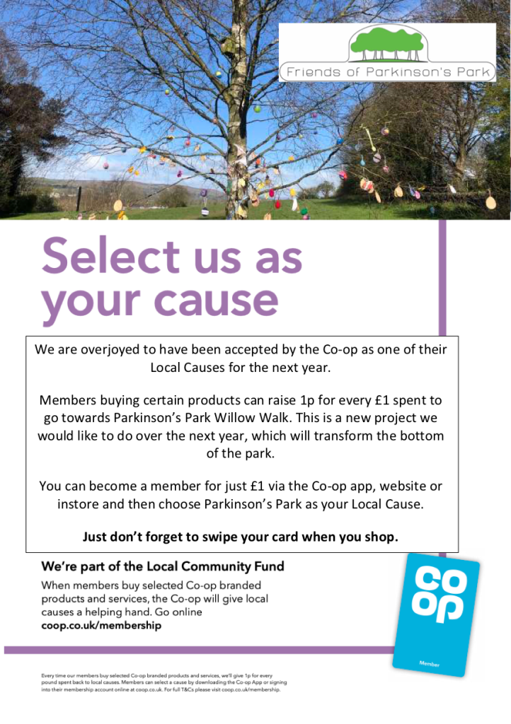 For one year from October 2021, if you are a member of the Co-op (cost £1) when you buy selected Co-op products and services from the Guiseley store, 2p for every £1 spent goes into your membership account. If you choose a cause, the money goes there. If you don’t the money is split equally between the 3 local organisations and causes. For 2021/22 the three local causes for the Guiseley Co-op are