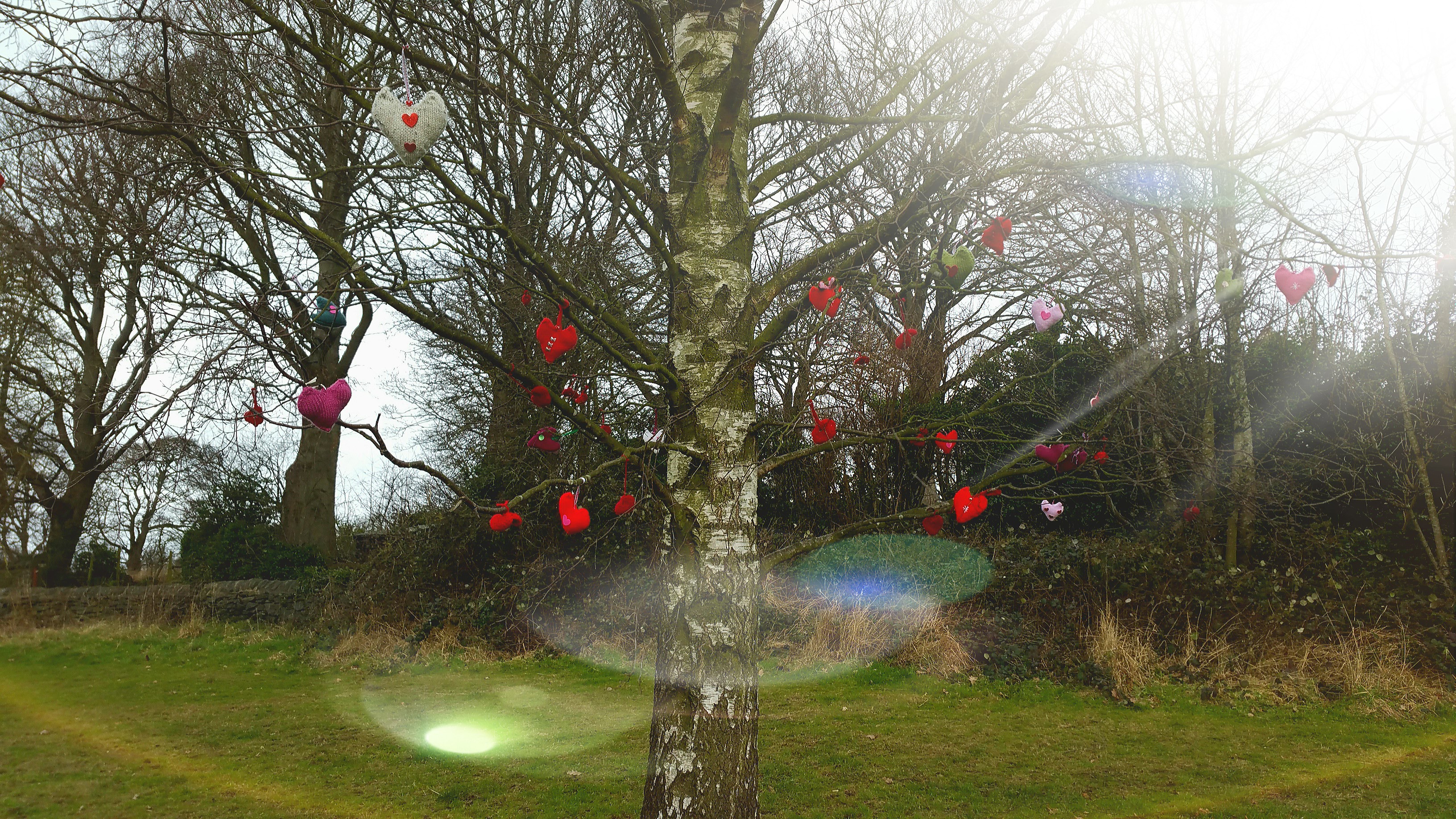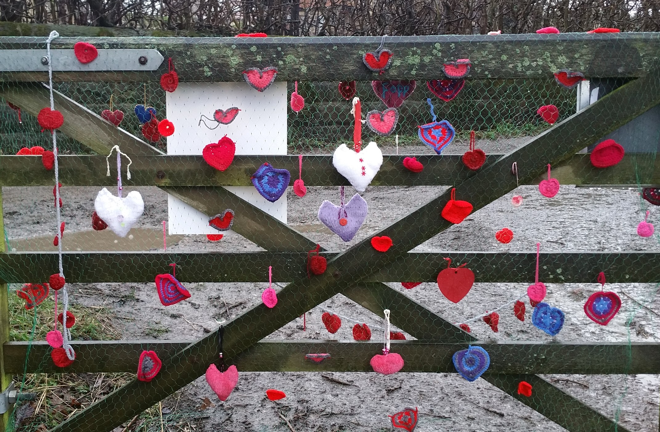 Valentines is also celebrated by a whole host of local residents who have made hearts to brighten up the dull weather and put them on the Celebration tree and the Farm Gate.