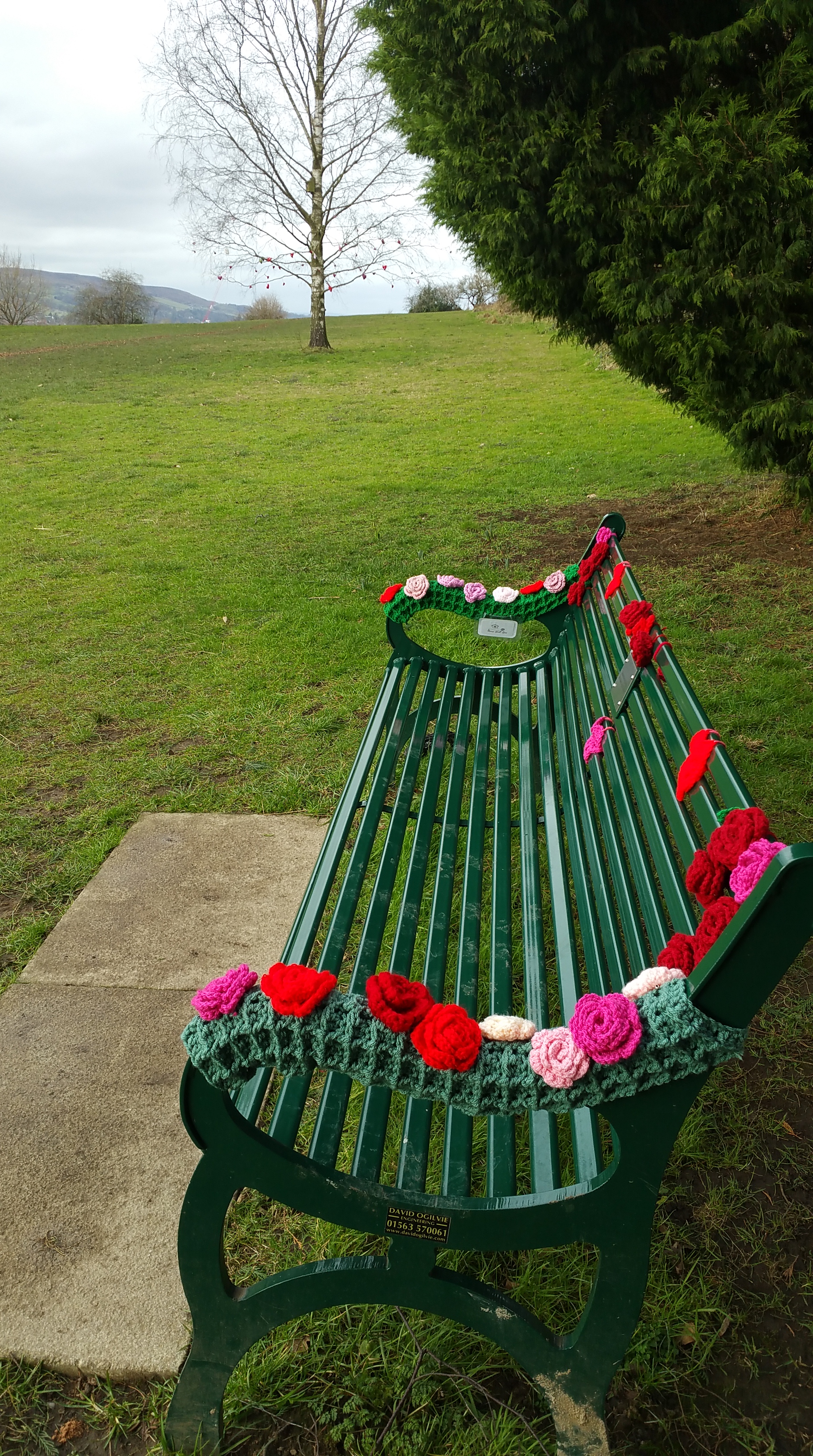 The Leeds 2023, Yarns Well Spun art project, run by Abi James of Daisy Croft Crafts, has beautifully decorated the Natter Bench with hearts and flowers for Valentine Day.