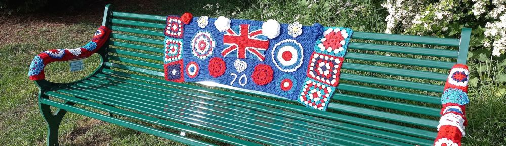 The run up to Jubilee has started in the Park, and elsewhere. Yesterday, 21st May, Guiseley Lights installed the Jubilee display at the cross in Towngate, and the Natter Bench in the Park was yarnbombed by the clever Ladies of the ‘Yarns Well Spun‘ project run by Daisy Croft Crafts.