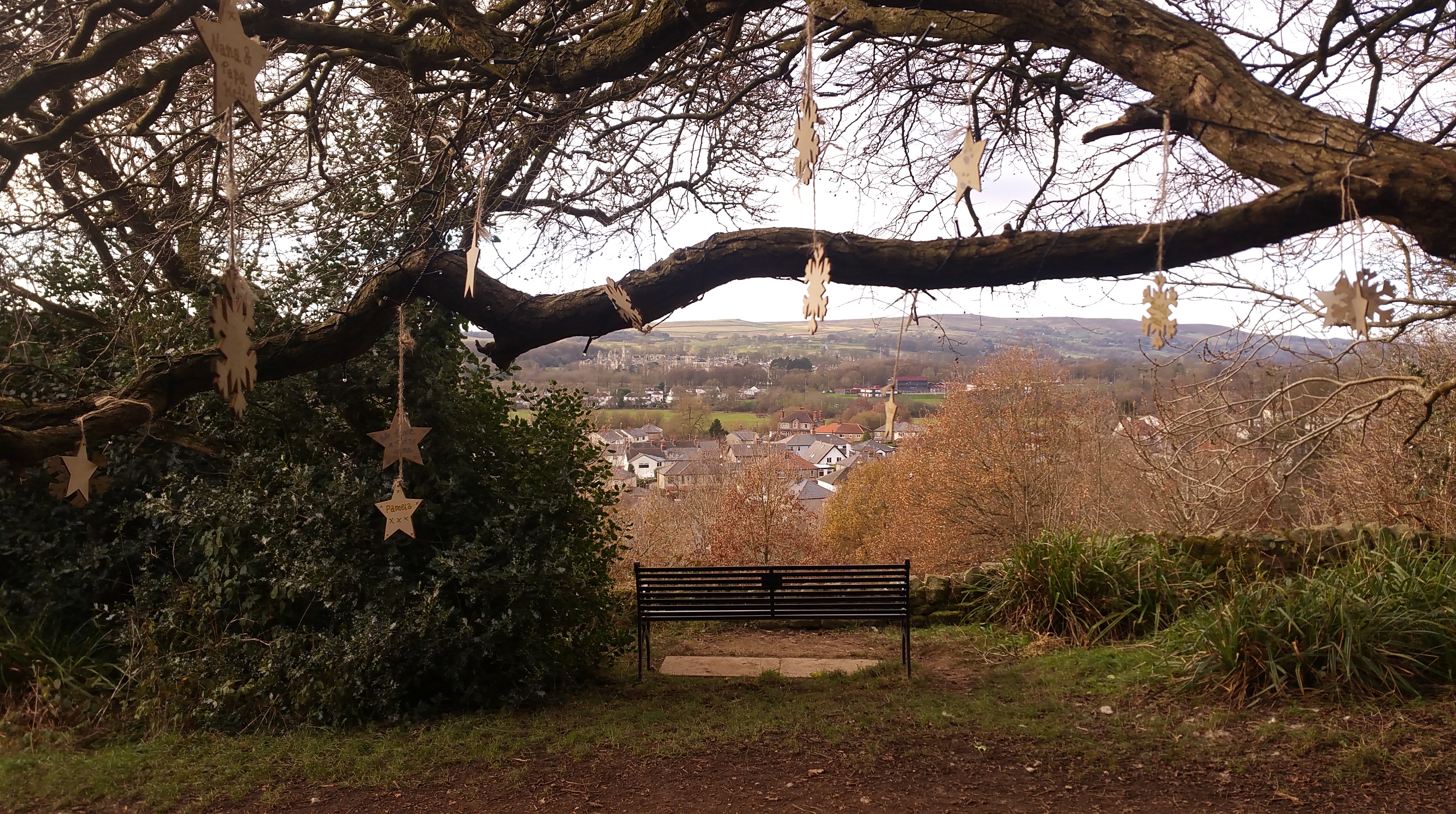 They also watch over the bench dedicated to little Freddie, whose family have now moved to Menston; which can also be seen from this much loved spot, with its canopy of twisted hawthorn, holly and elder.The inscription on the bench given by Freddie’s family isĀ “when it rains look for rainbows, when it’s dark look for stars”