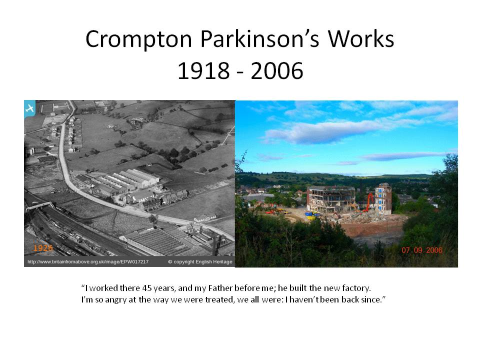 Very sadly Cromptons closed in 2004 following a sale in 1999 to Cooper Industries. The works were pulled down in 2006 and a new housing estate developed. The Park is now owned by Bellway Homes and managed by Meadfleet.