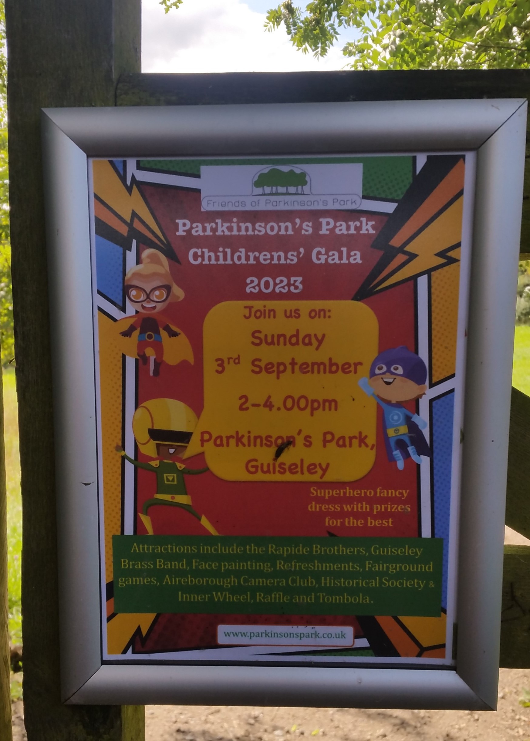 We would ask, as always, that children are accompanied by adults. And if the weather is pouring down, as has been its habit since July, we will cancel the event, so watch out on the day on our Facebook page. Parkinson’s Park.
