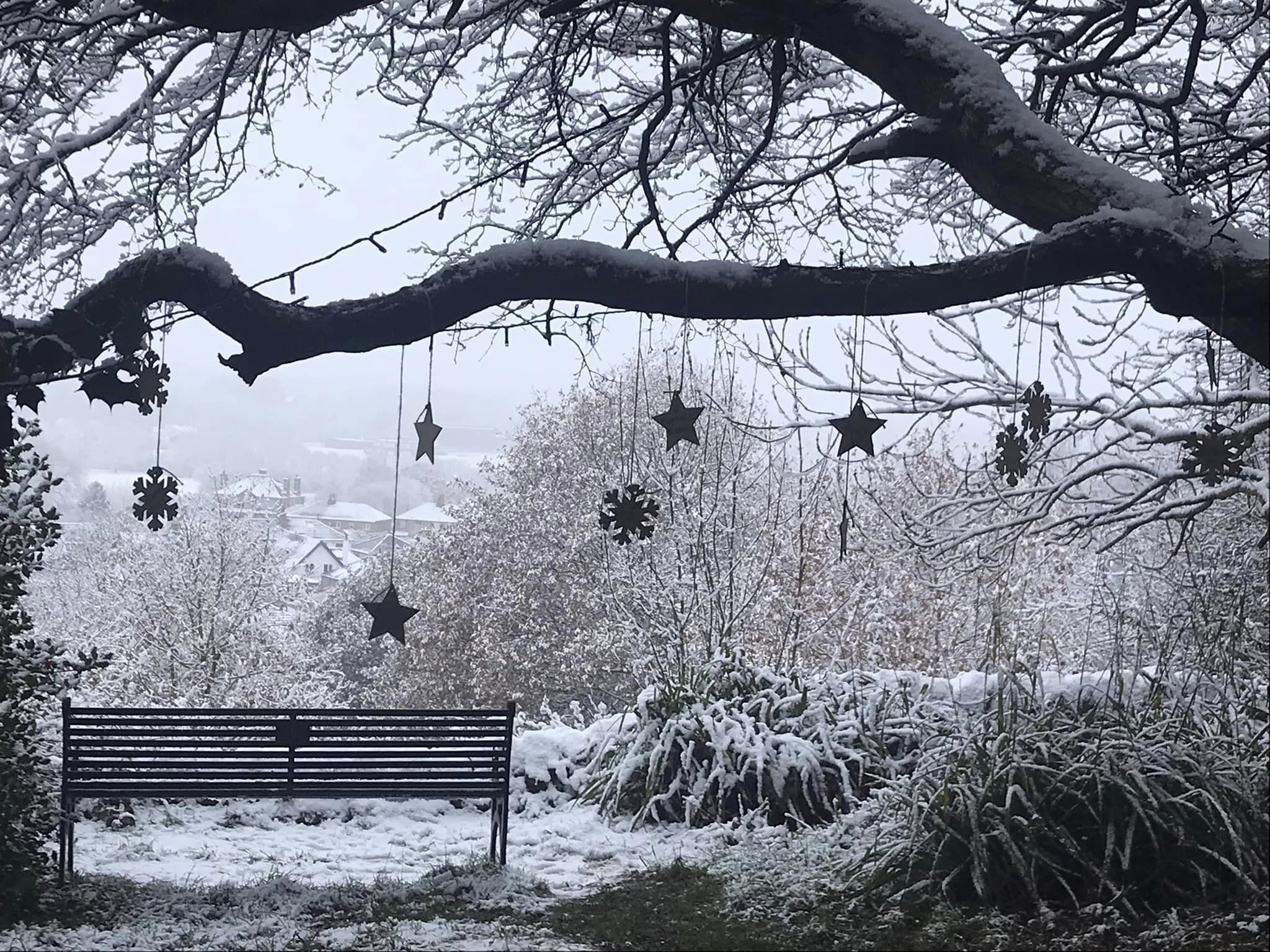 The stars and snowflakes in memory of your loved ones (human or pets) are up again this year at the small Kelcliffe Lane entrance . New ones have joined old ones from previous years – although a few older ones are now too weather worn and have had to be discarded.