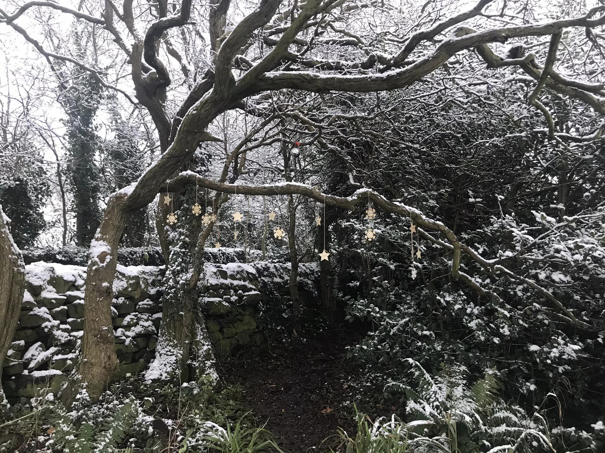They look lovely ‘twinkling’ in the snow as they hang from the branches of the old hawthorn trees. They will be lit by ‘fairy lights’ just before dusk